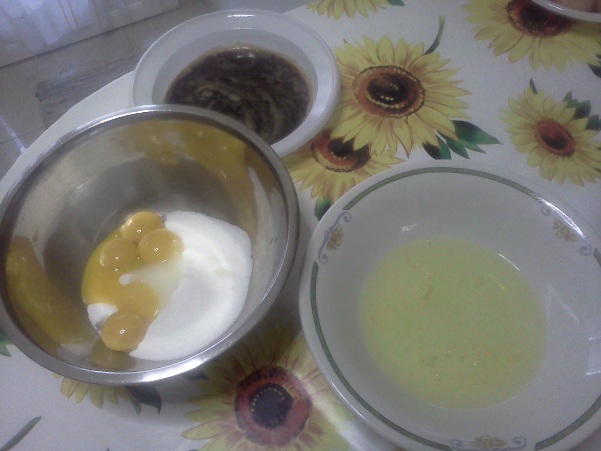 Uniamo allo zucchero i primi e montiamo a neve, ben fermi i secondi.
