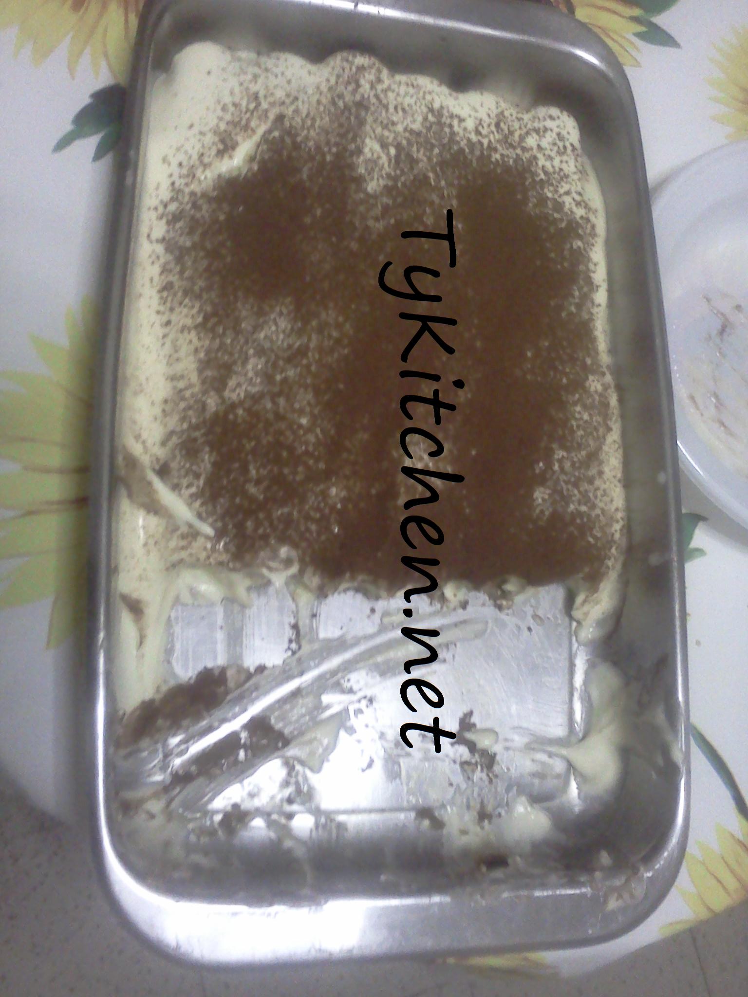 Prepariamo il caffè e versiamolo su un piatto fondo. Prendiamo i biscotti e bagniamoli con il caffè girandoli nel piatto in modo però che non si inzuppino troppo. Adagiamo i biscotti in un contenitore alto di vetro (o in una teglia) e copriamoli con la crema di mascarpone, continuiamo in questo modo a strati, fino a terminare la crema di mascarpone. Mettiamo ora il tiramisù nel frigo per almeno 2 ore. Prima di servirlo spolveriamolo con la polvere di cacao.