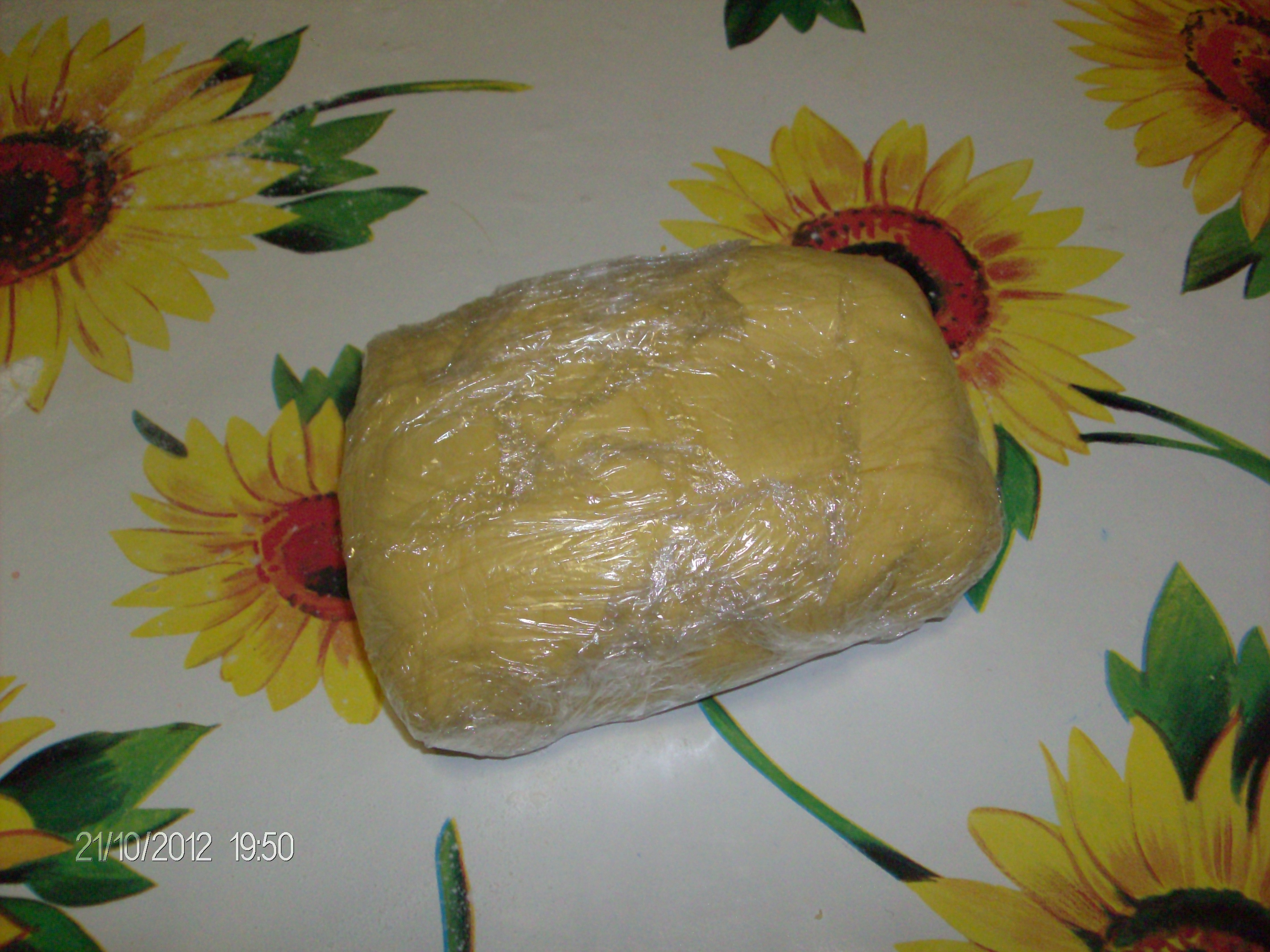 Creiamo una palla e involgiamola in pellicola per alimenti. Mettiamola in frigo per almeno 30 minuti.