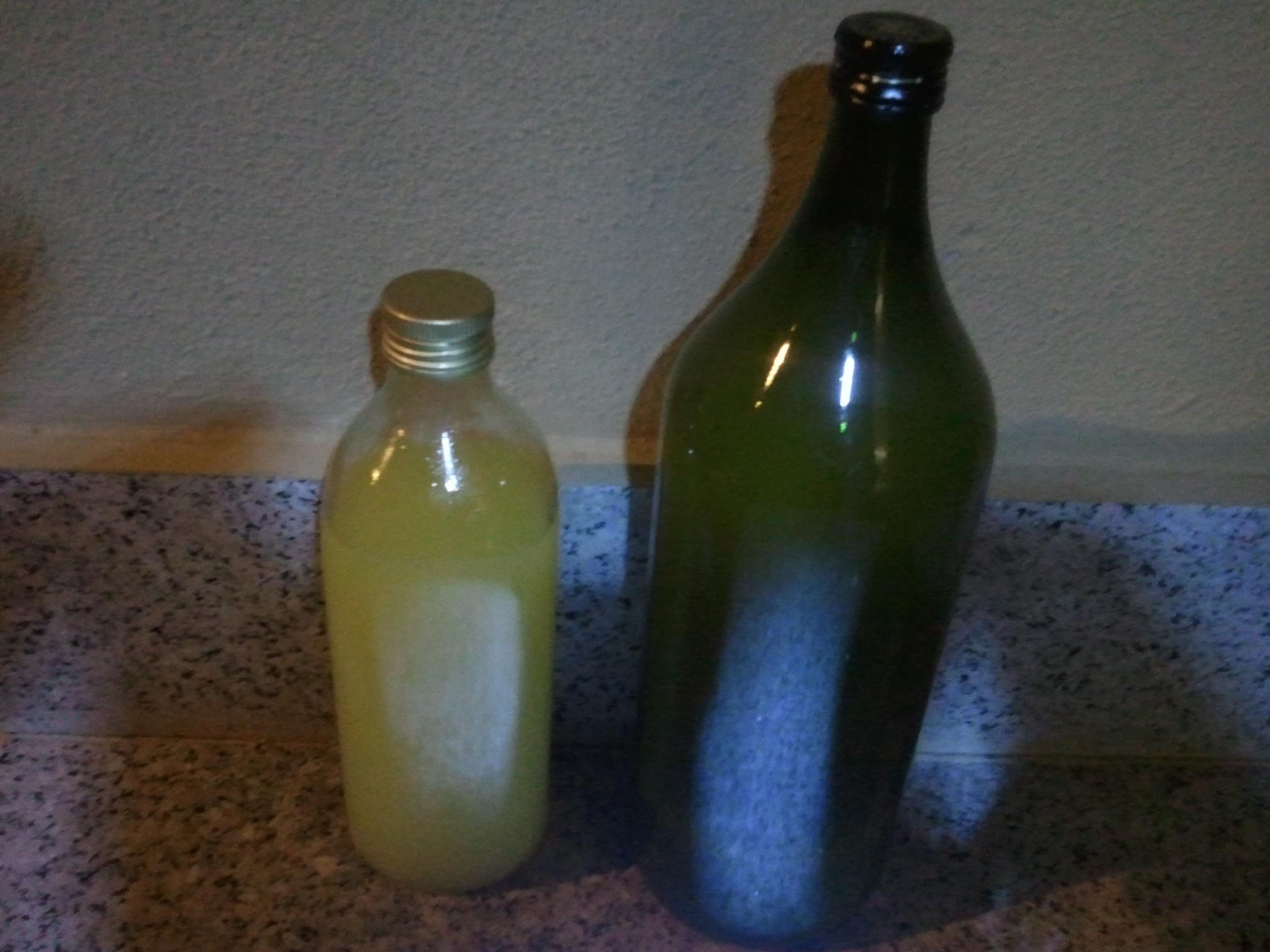 Sciogliamo lo zucchero nell’acqua che porteremo ad ebollizione. Spegniamo e filtriamo l’alcol, con una garza, direttamente nella pentola dell’acqua zuccherata. Mischiamo bene e imbottigliamo caldo.