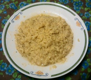 Oggi il mio Frafra mi ha chiesto il risotto in bianco, che per lui significa riso bollito condito poi con il burro. Una cosa atroce, secondo il mio modestissimo parere Siccome però volevo accontentare la sua richiesta di un riso leggero ho deciso di farne uno a modo mio, che fosse leggero ma gustoso e, sopratutto, che fosse un risotto e non un ammasso informe di riso:P Ecco che ne è venuto fuori.