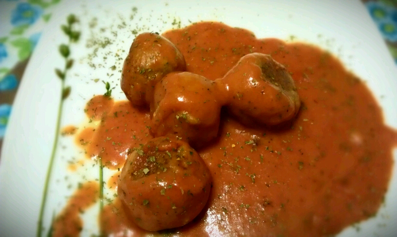 Ho fatto dorare le polpettine e poi ho aggiunto una confezione piccola di passato di pomodoro. Ho lasciato andare per circa 5 minuti e ho aggiunto la besciamella che mi era avanzata.