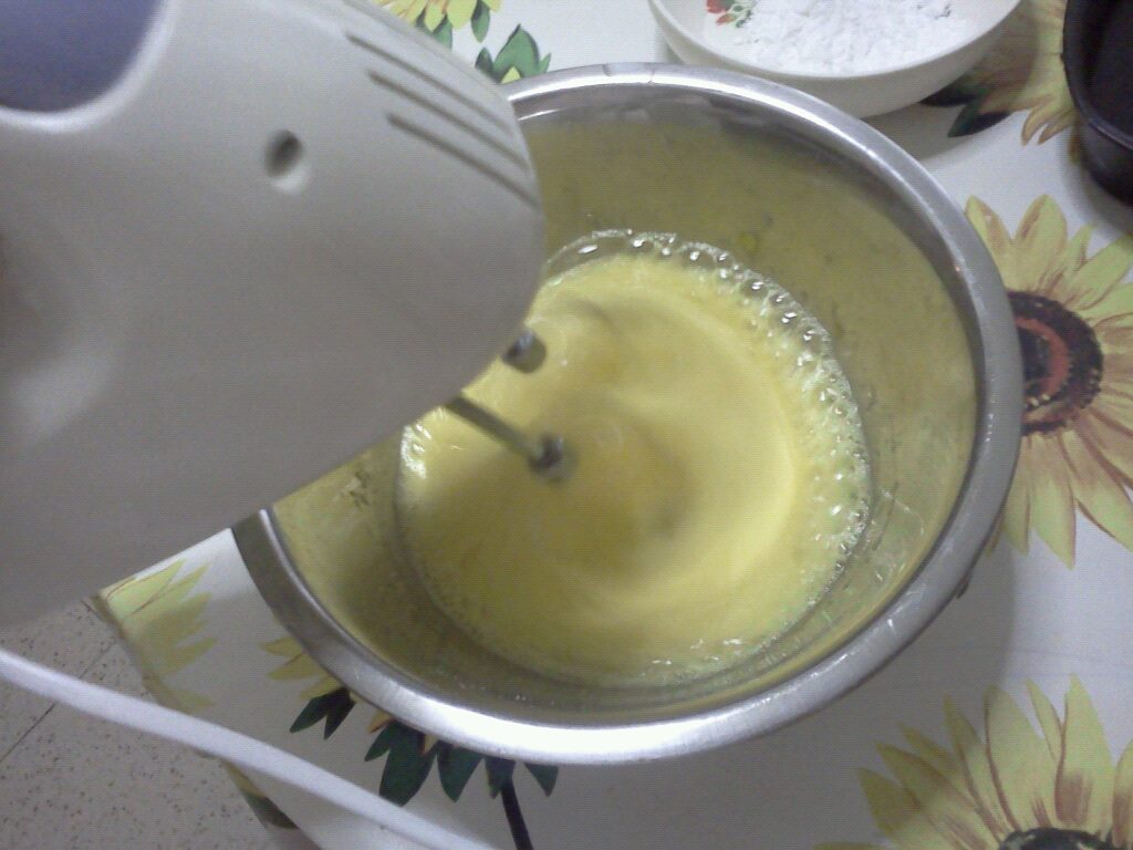 La crema deve diventare molto chiara e densa. Per vedere se è pronta provate a sollevare le fruste e a far cadere qualche goccia di impasto sulla superficie della crema, se la consistenza è quella giusta, le gocce rimarranno in superficie senza affondare subito.