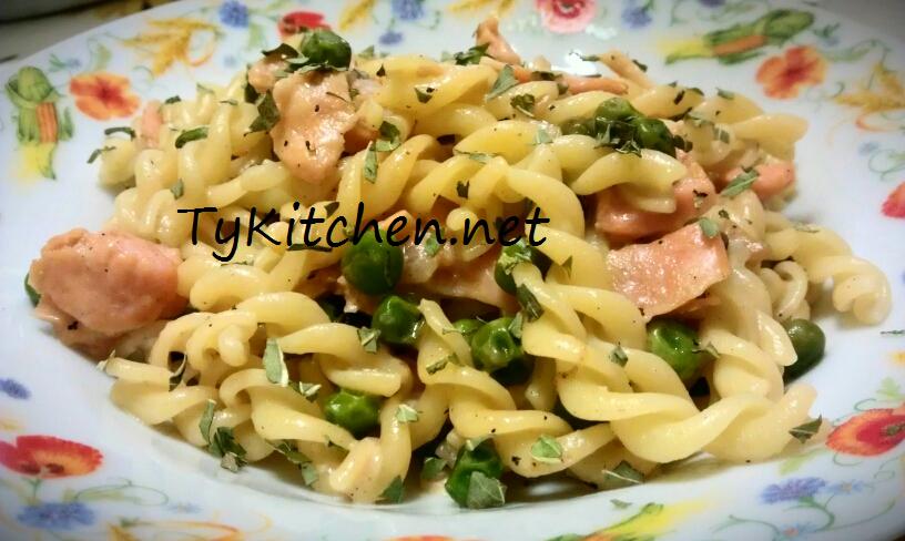 - Provata anche con l’aggiunta del salmone affumicato, una vera bontà. Ho fatto il solito trito di cipolle e ho messo prima dei piselli il salmone, l’ho fatto rosolare un pochino e poi ho aggiunto i piselli e una noce piccolissima di burro. Una volta cotti i piselli il condimento era pronto. Ho fatto saltare la pasta, spolverata di basilico e pronta da mangiare 🙂 Un consiglio, se il salmone dovesse risultare troppo salato, non mettete sale alla pasta.