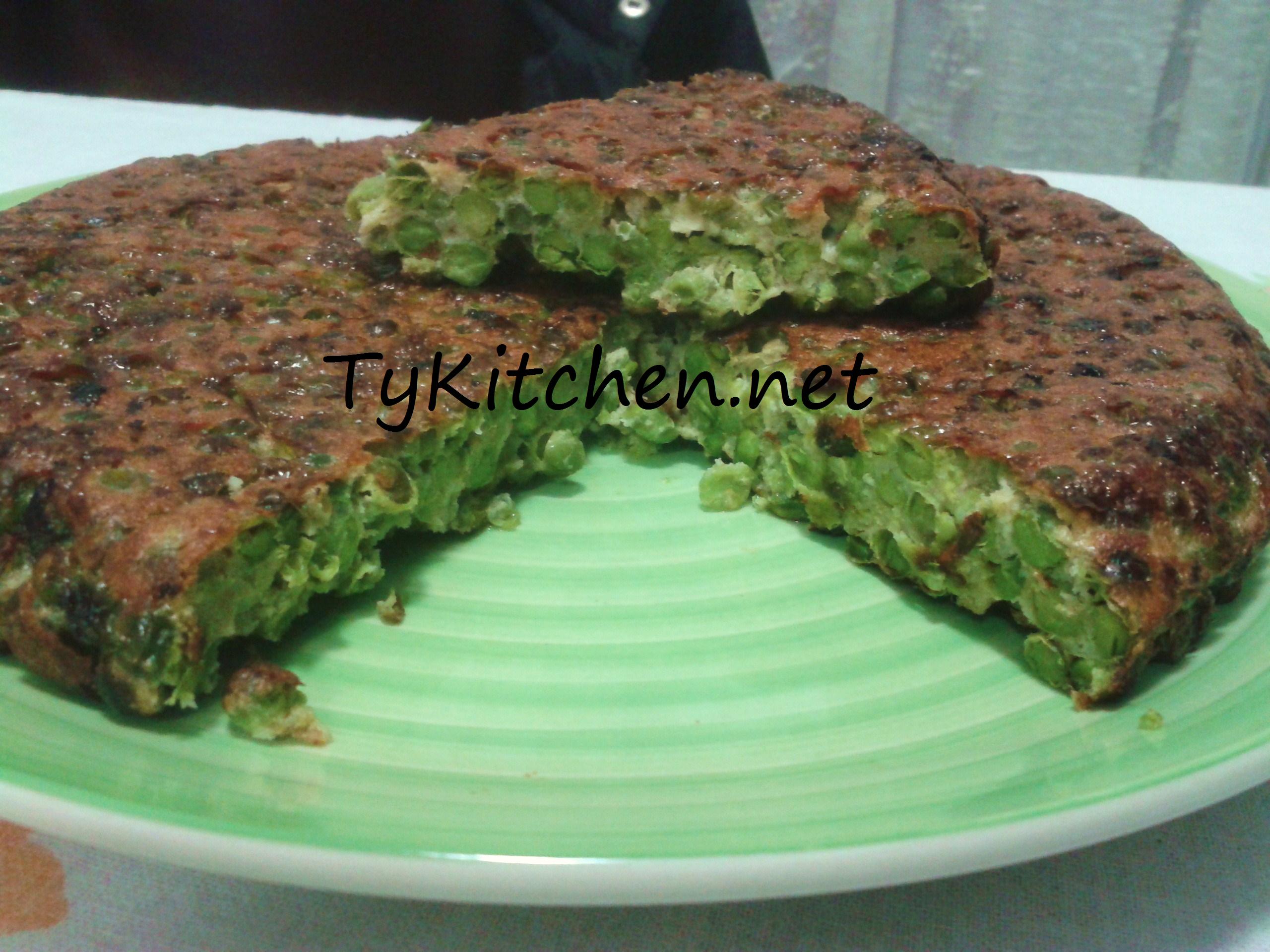 Scaldiamo una padella antiaderente alta con un cucchiaio di olio e versiamoci il composto. Con un mestolo di legno allarghiamo i piselli per tutta la grandezza della padella. Mettiamo il coperchio e lasciamo cuocere per circa 10 minuti. Passato questo tempo la frittata dovrebbe essersi indurita abbastanza per permetterci di girarla e cuocerla dall’altra parte.