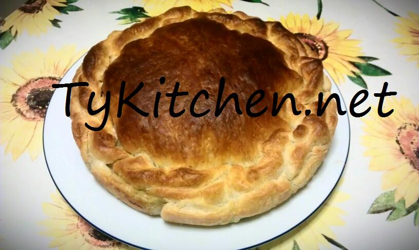Versiamo il contenuto della padella prendendolo con una schiumarola in modo da non bagnare troppo la pasta sfoglia. Una volta versato tutto livelliamolo con una spatola di legno e copriamo con l’altra sfoglia tonda. Arrotoliamo tra di loro i bordi delle due sfoglie per chiudere la torta e se non vogliamo che si gonfi durante la cottura bucherelliamo la parte superiore. Se vogliamo che la parte superiore della torta venga lucida allora spennelliamola con dell’albume.