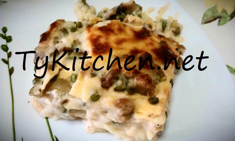 Variante per la lasagna bianca con melanzane e piselli: