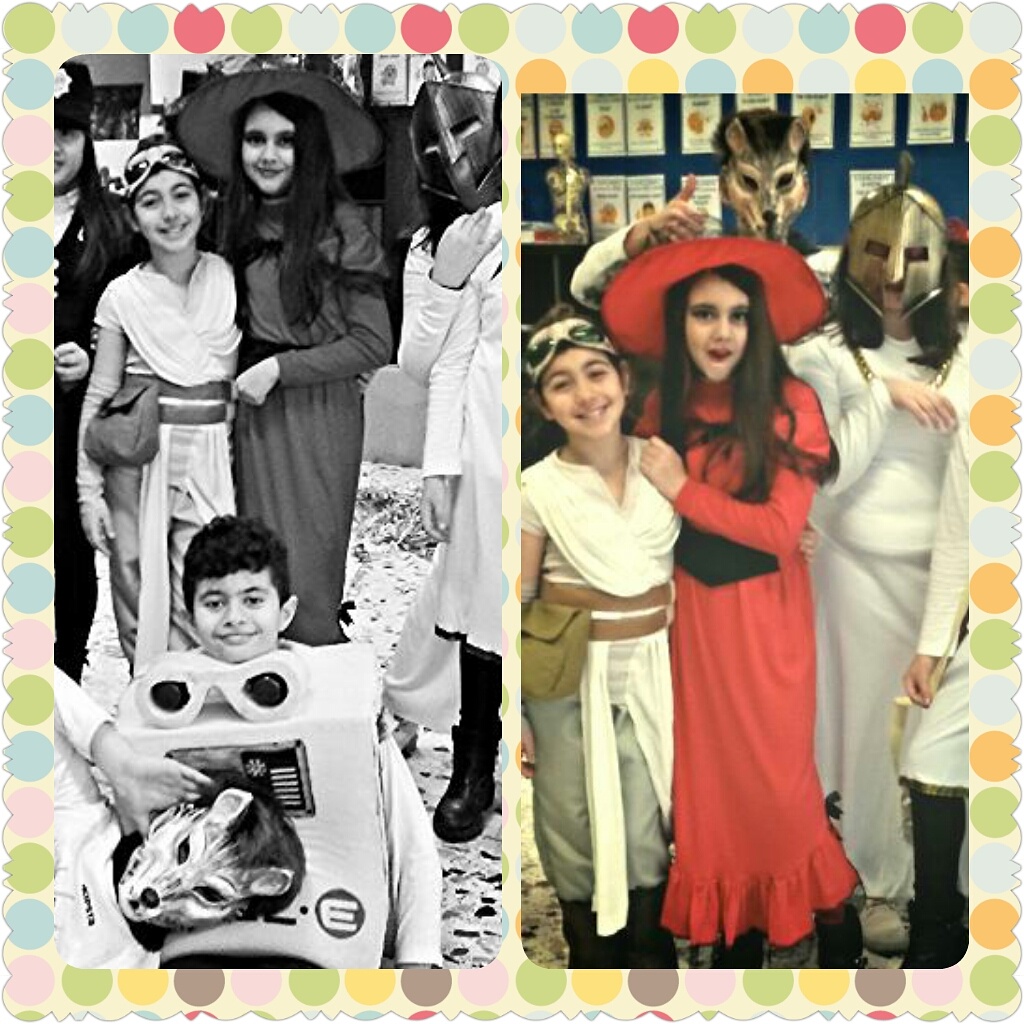 Poi con Feny a prendere le bambine che oggi avevano la festa in maschera a scuola.